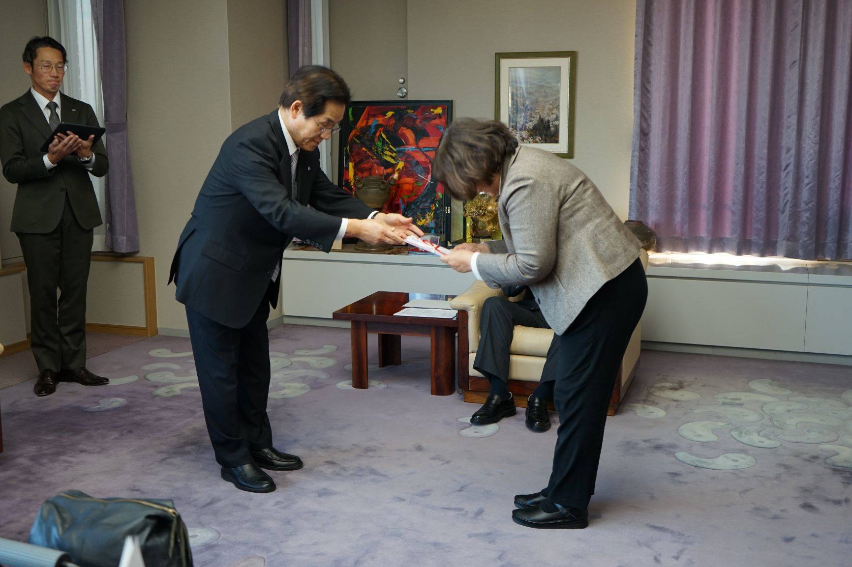「中学校への図書寄贈 及び チャリティーゴルフ大会益金寄贈」の贈呈式