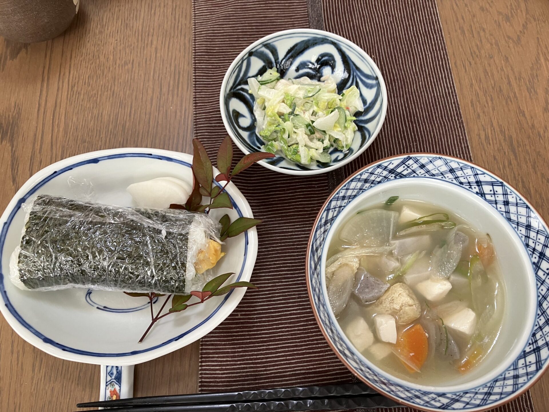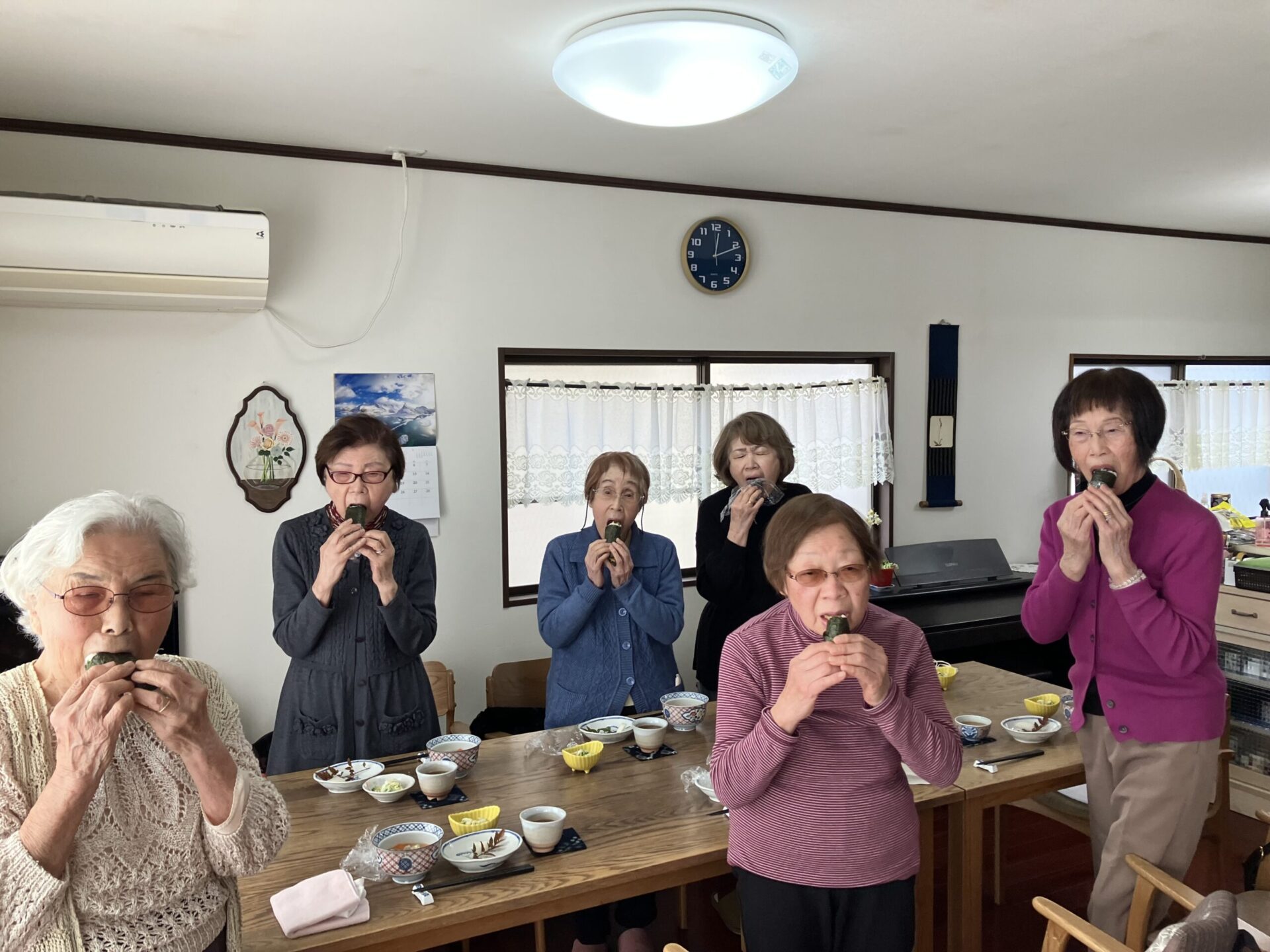 今年は南南東を向いて、最初は黙って頬張りましたが、さすがに1本食べ終わるまでは無理で座ってたべました。