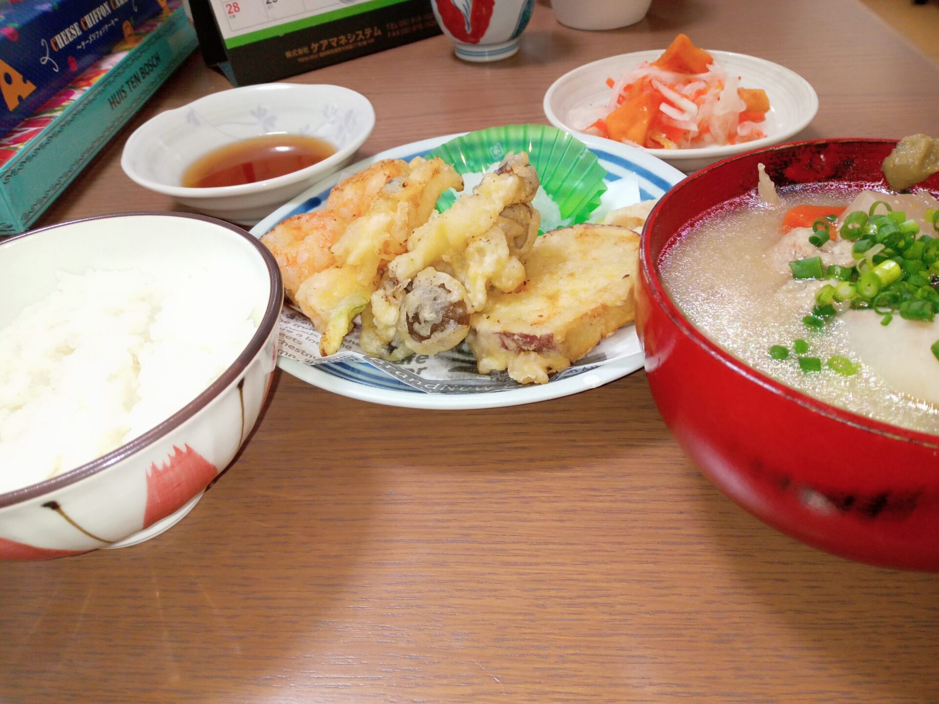 天ぷら(れんこん えびと三つ葉のかき揚げ さつま芋 しめじ)