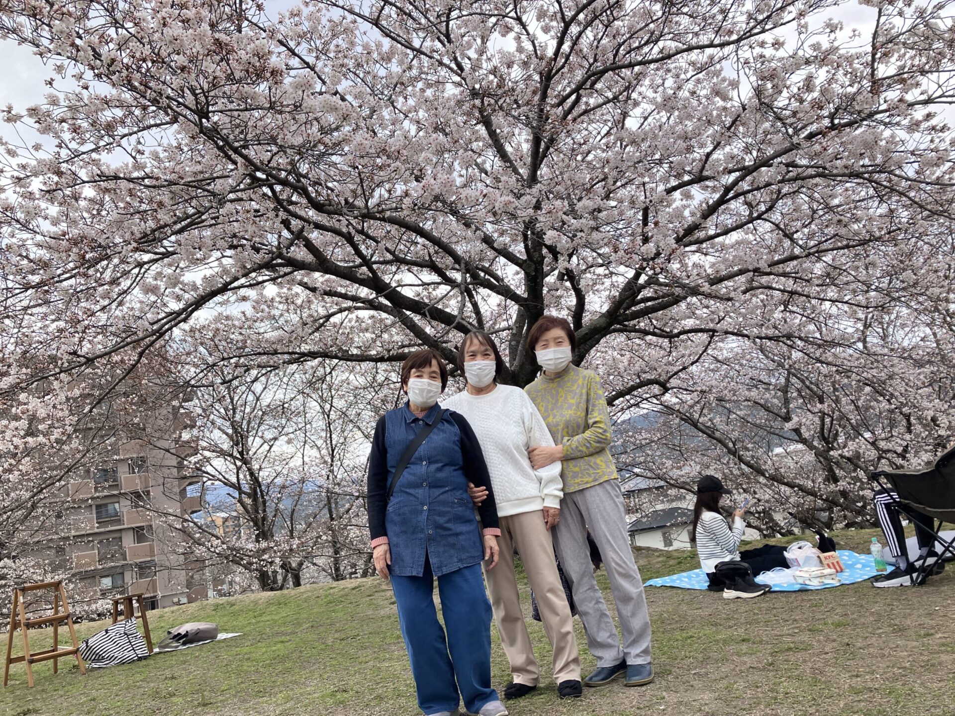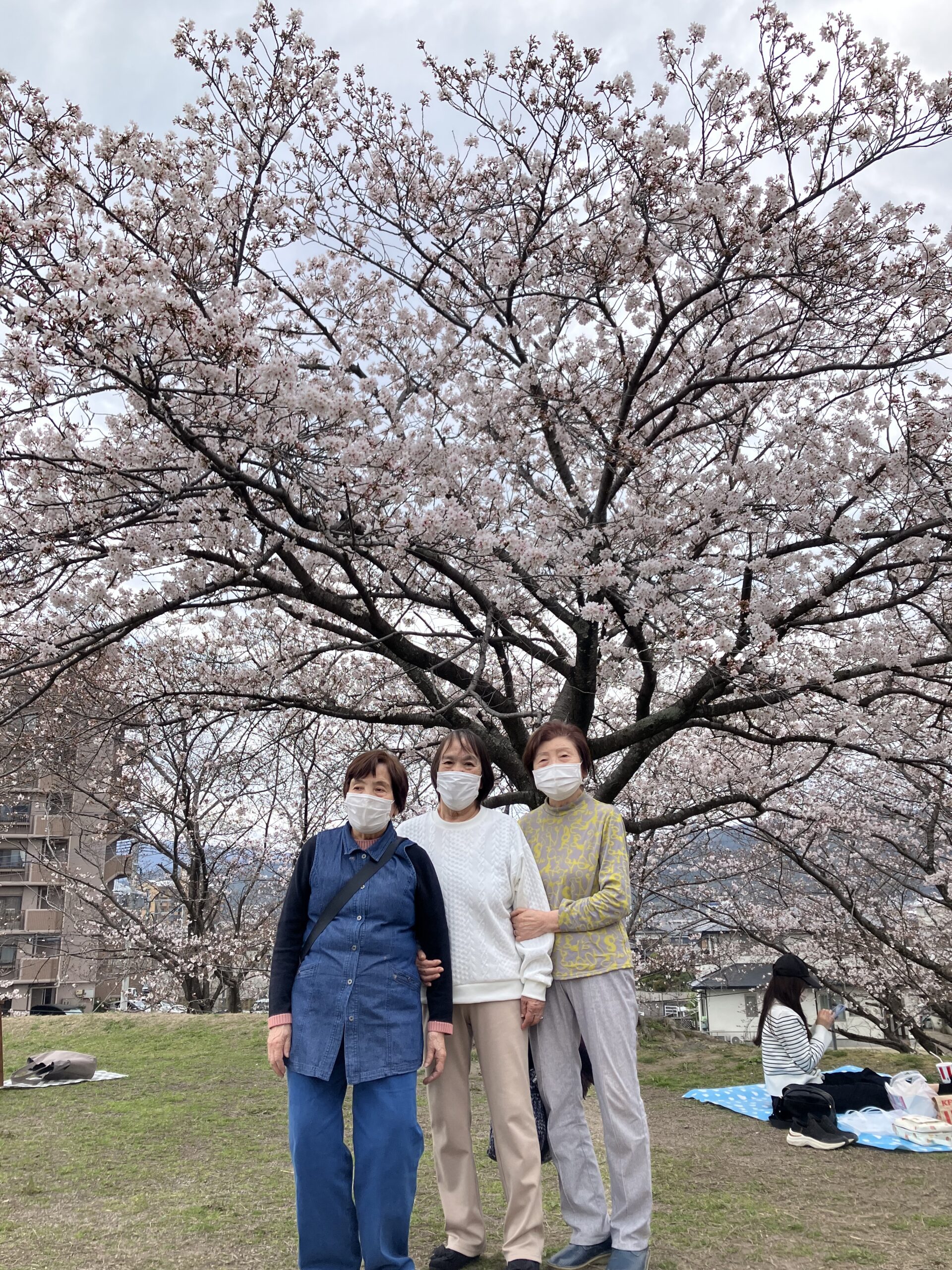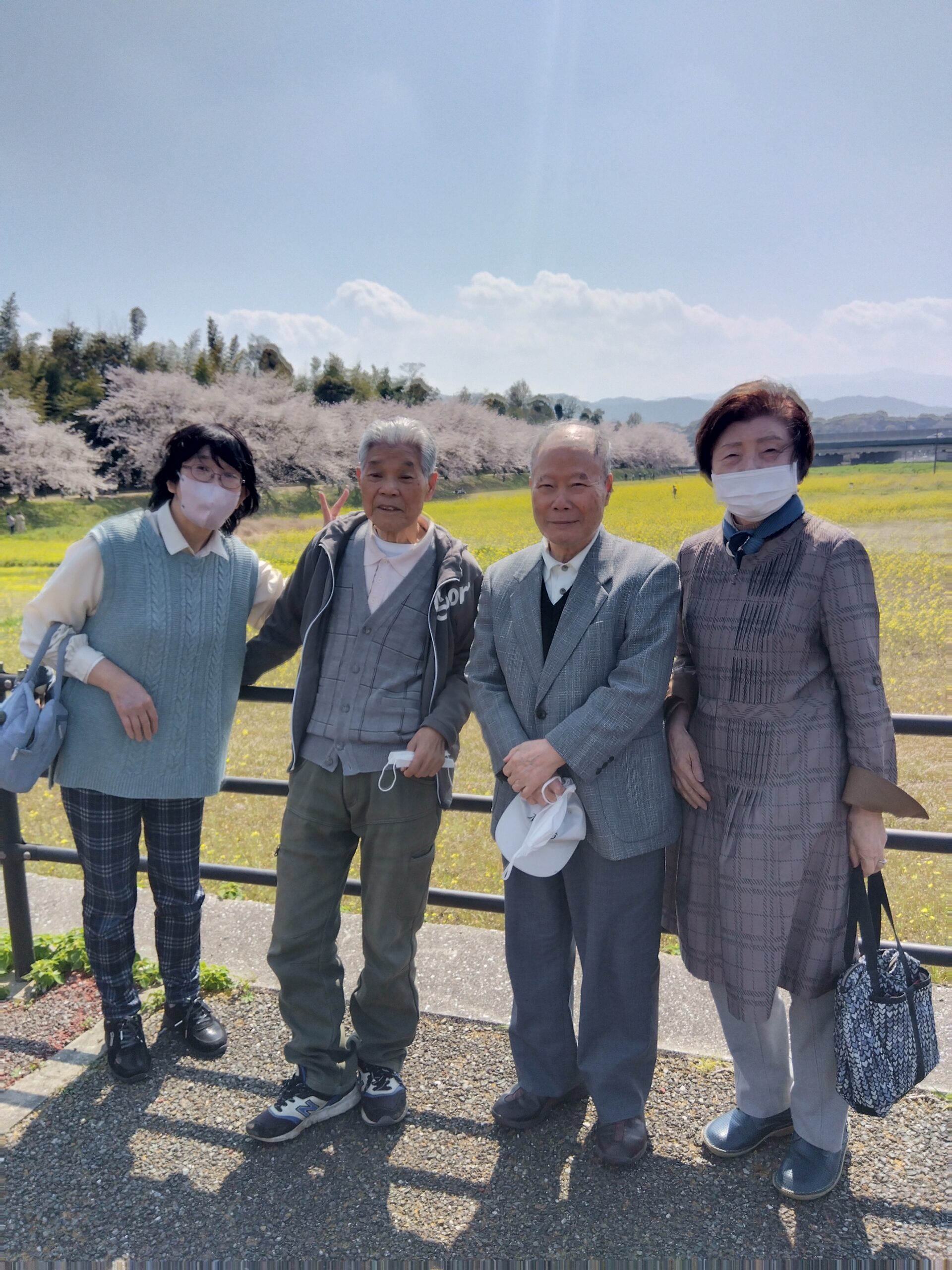 4月3日(金)に歩いて行ける近くの毛勝公園に行ってきました。ちょっとの距離ですが、みなさんにとってはやっとかっと、頑張っただけあって今までで一番満開できれいでした。