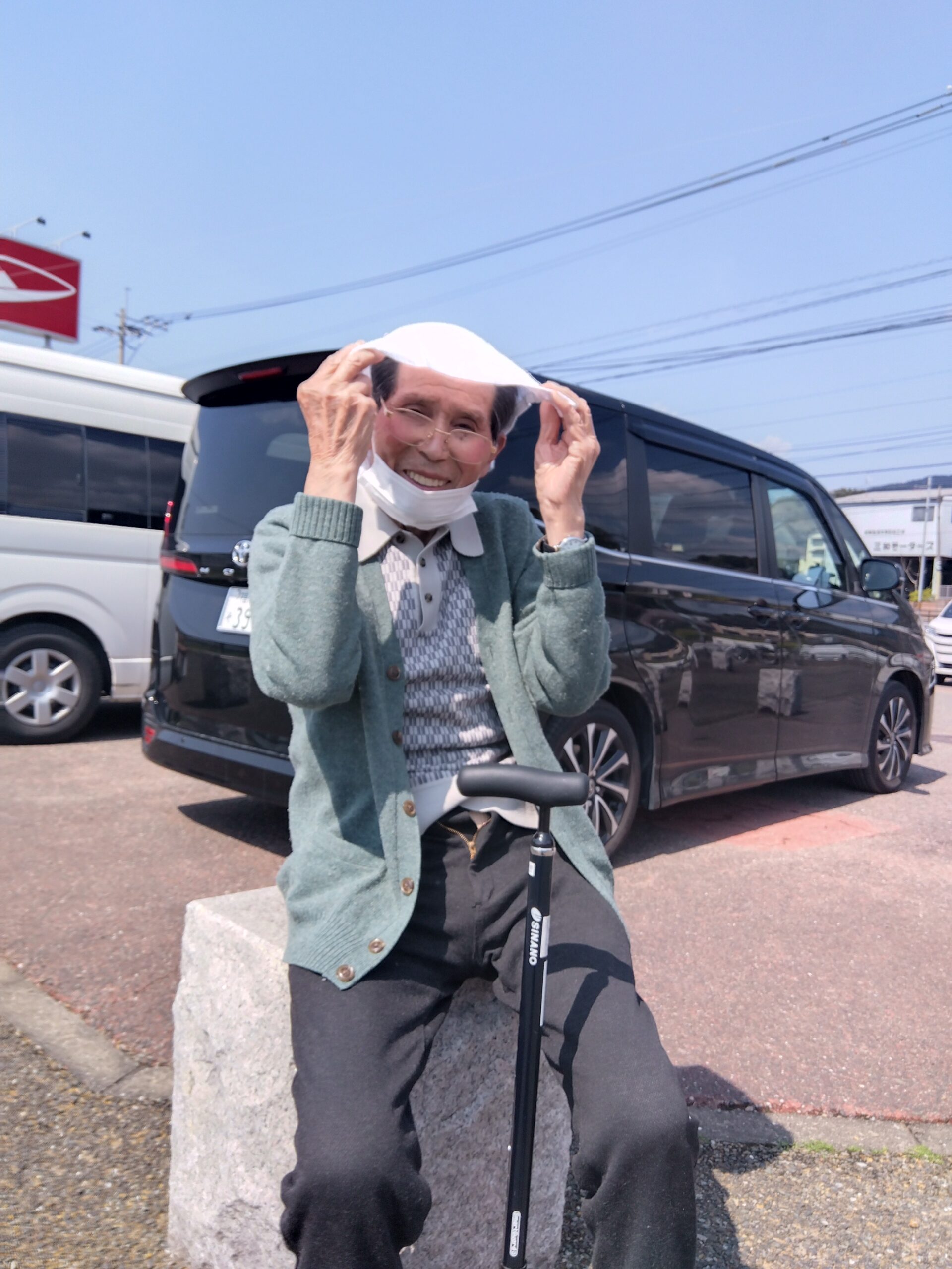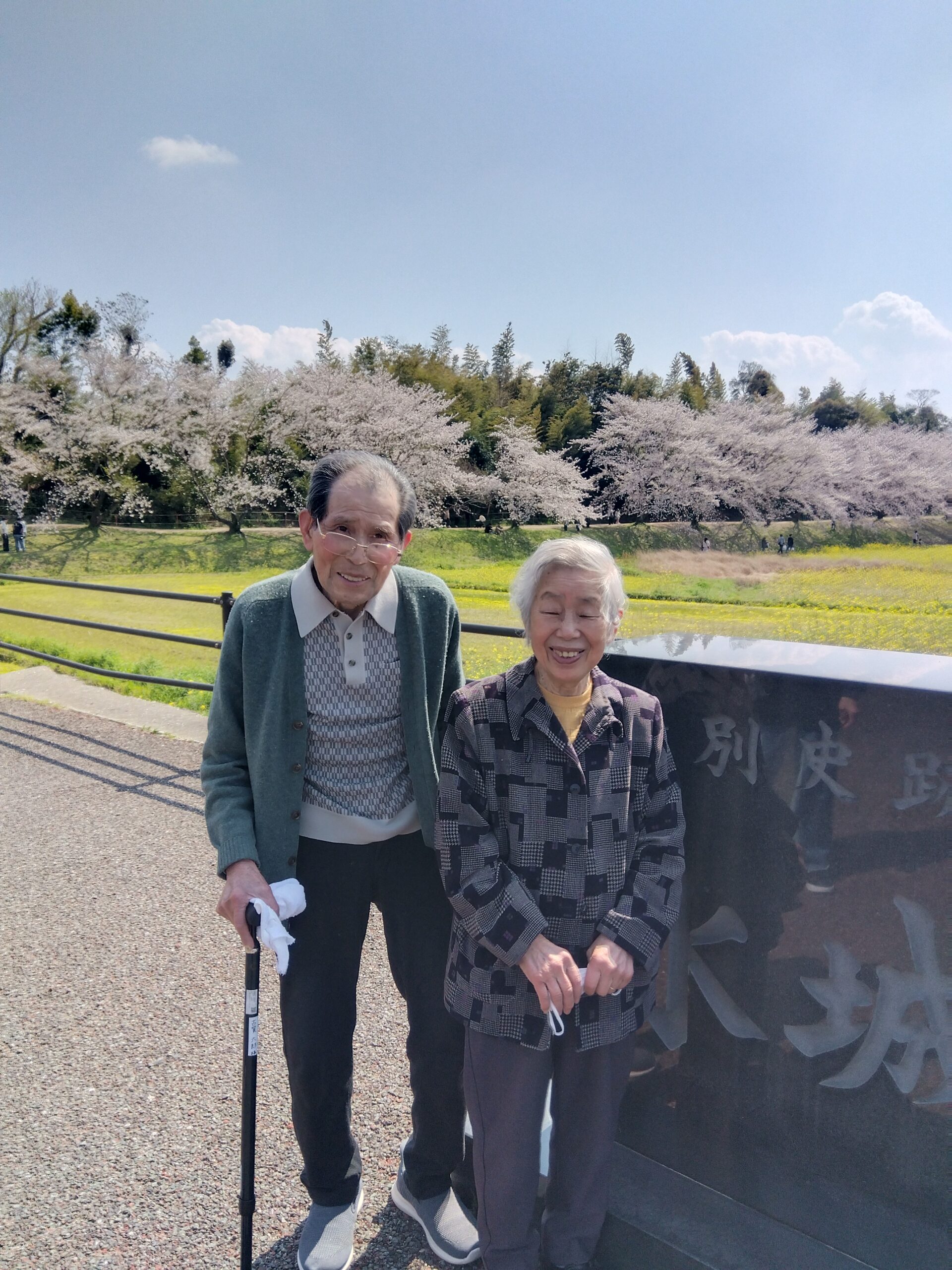 ご主人にとって久しぶりの外出、一緒に写真をとろうとおっしゃるのに、照れる奥様。いい笑顔でしょう?仲睦まじい姿にほっこりします。